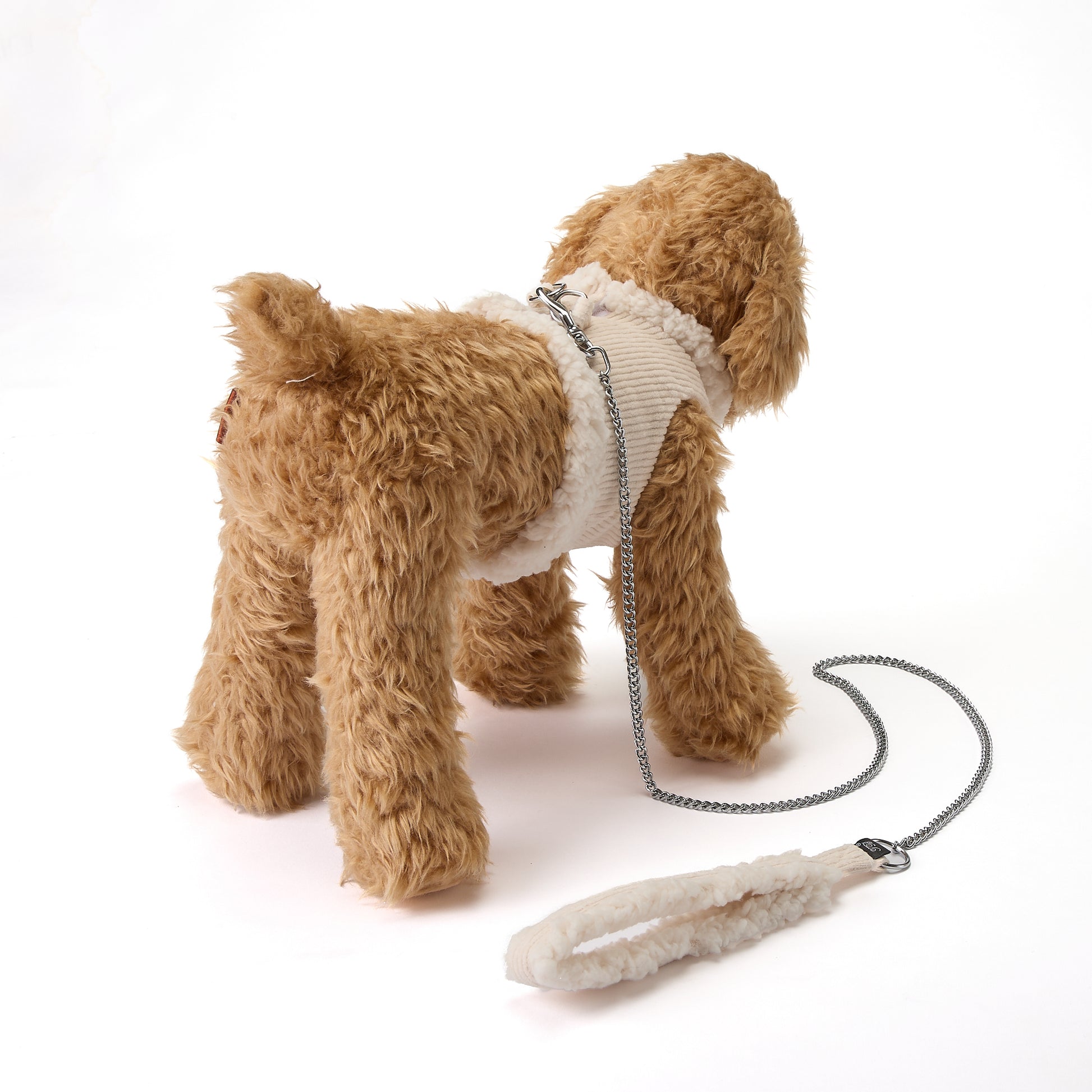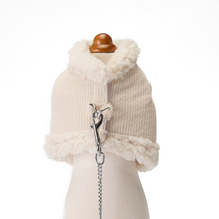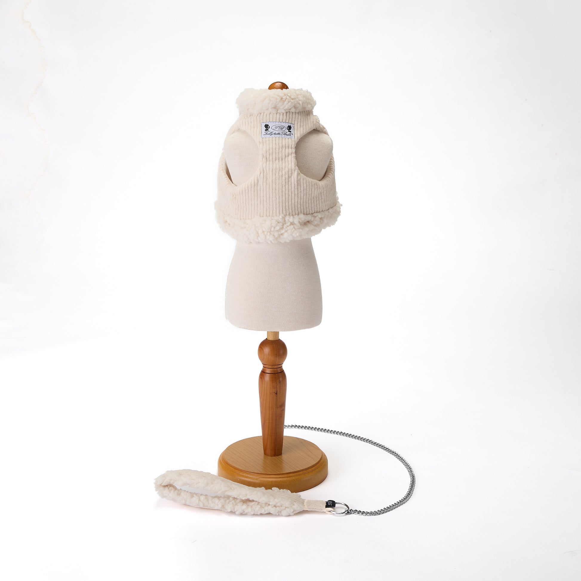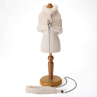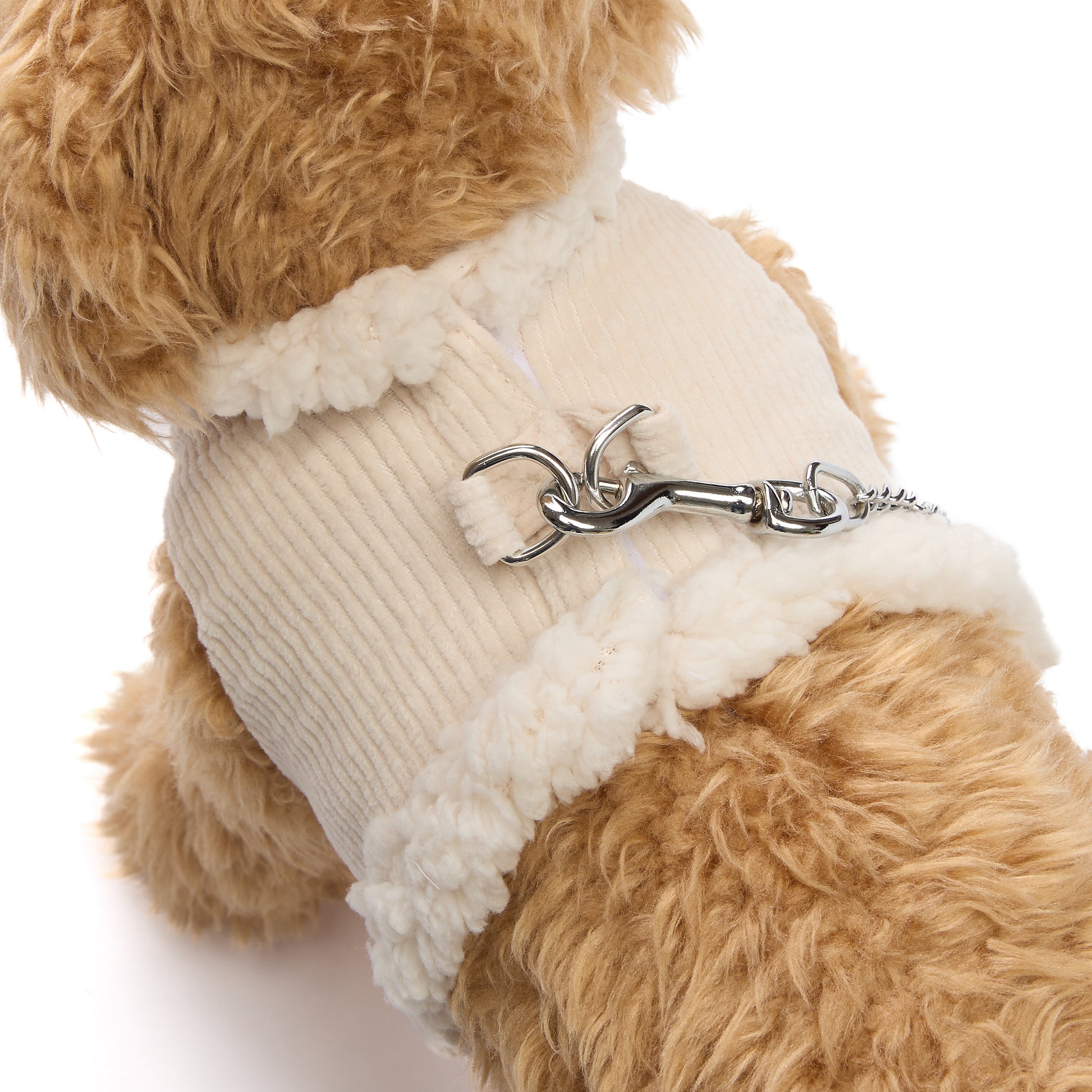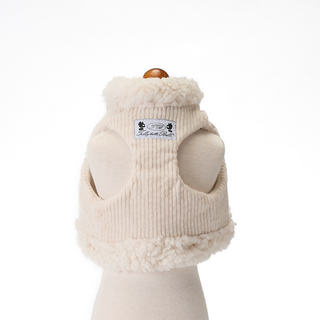 コーデュロイ生地のボディに襟元と裾にボアのついたハーネスとリードのセットです。
