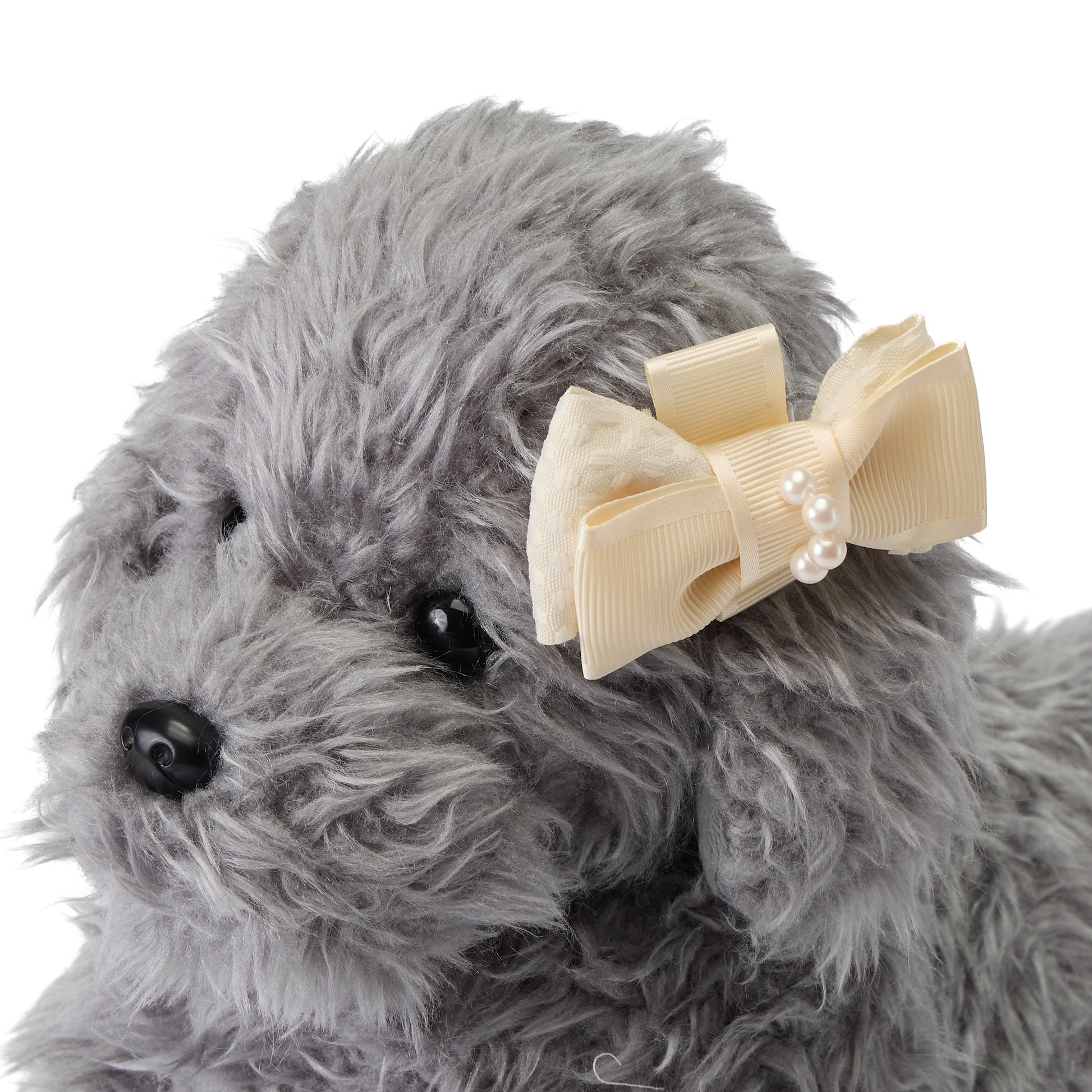 クリーム色のリボンにパールがアクセント。上品な印象のリボンです。